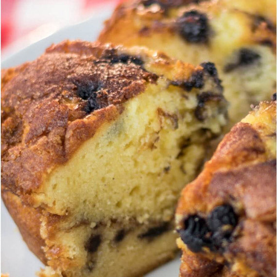 Fresh New England blueberries are placed in the center and on top of this cake. These tart berries combined with a touch of pure New England maple syrup produce an incredible flavor you just can't resist. This cake is baked without walnuts and is certified Kosher. These cakes have a two week shelf life and one year in the freezer. The size is 8" and 1.75 lbs with 10 to 14 servings.