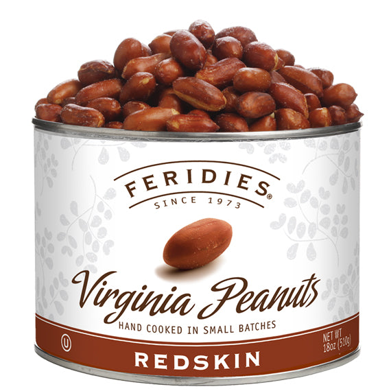 Our extra-large gourmet Redskin Virginia peanuts will be shipped via standard shipping services in the U.S. every 3 months for the next 12 months. Choose either our 18 oz. or 36 oz. can. Price includes (4) cans of Redskin Virginia peanuts and shipping for the entire year. You will save over single can orders! Shelf life of each can is approximately 1 year. Our Redskin Virginia Peanuts are OU Kosher Certified and Non-GMO Project Verified.